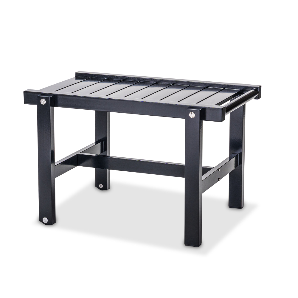 Rullvagn eller sidobord i svart aluminium från Fri Form är en ikonisk klassiker formgiven av Elsa Stackelberg. Fri Forms bordet i svart aluminium är mycket väderbeständig och tålig eftersom den är i aluminium rostar den inte. Bordet är lackad med en epoxilack. Om denna blir skadad är det lätt att åtgärda med ett lackstift. Utmärkande och karaktäristiskt för varumärkets kollektion, är det återhållsamma och strama formspråket, rensad från onödiga detaljer och därför klassisk och stilren. Seriens tidlösa formgivning gör att dessa möbler har en given plats i den svenska designhistorien och håller i generationer utan att falla ur tiden. Detta bord finns att beställa i teak, redwood och olika färger aluminium.