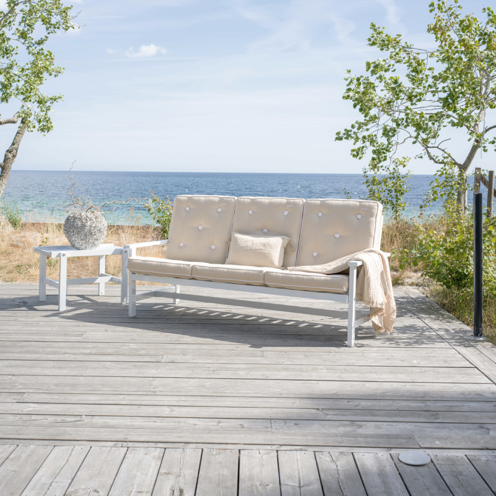 Pris här avser 3-sitssoffa i aluminium exkl dyna. Pris för detta tillkommer. Priset på soffa kan variera beroende på val av material, furu, teak eller aluminium.